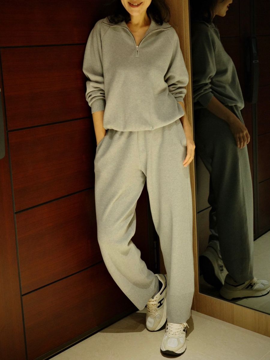 麥麩棕縫線羊毛束口褲