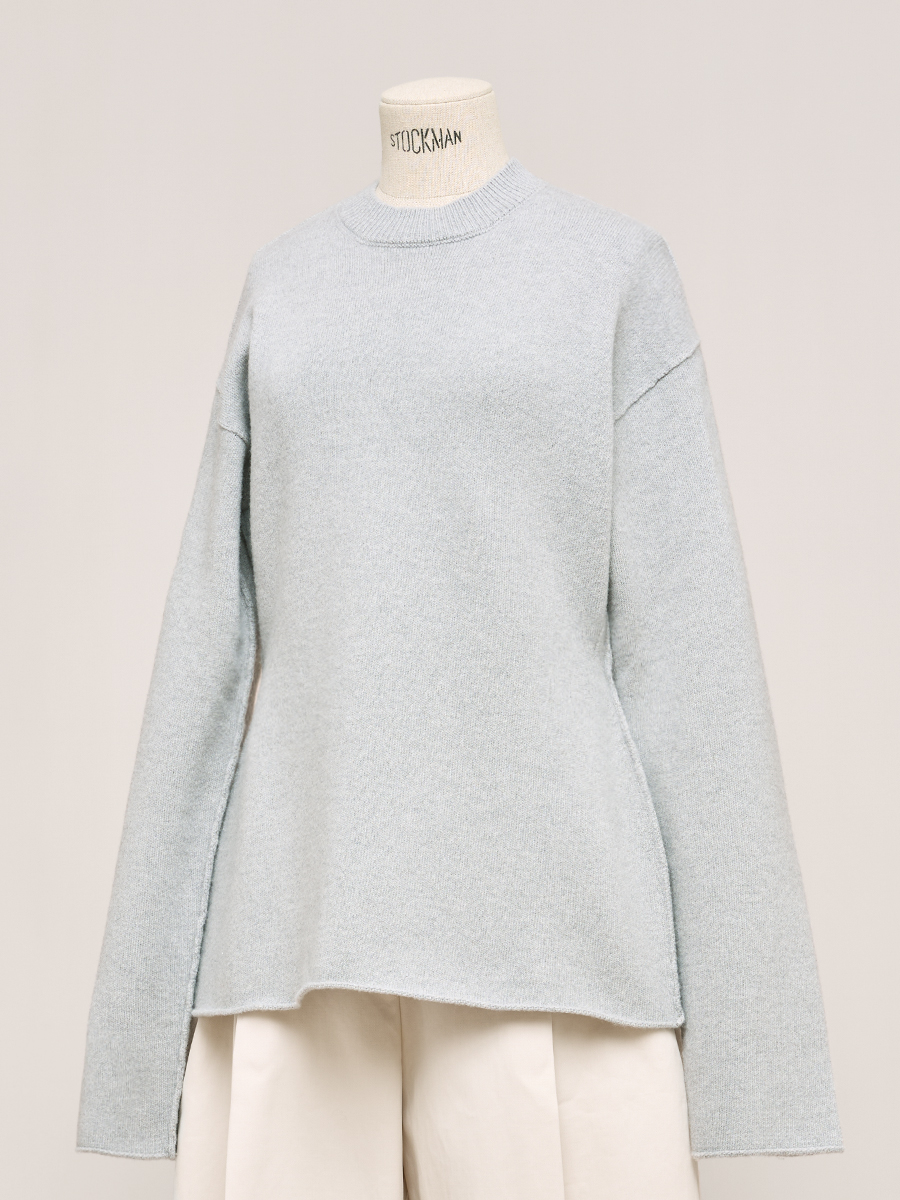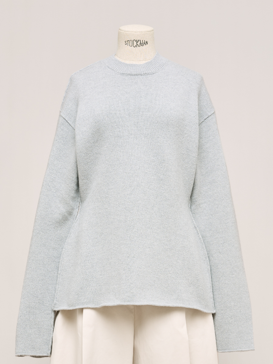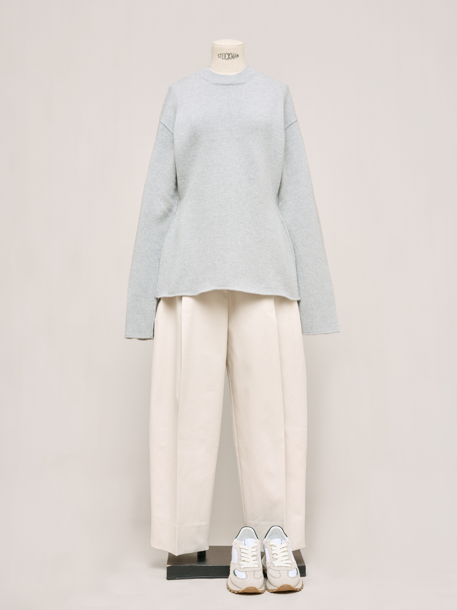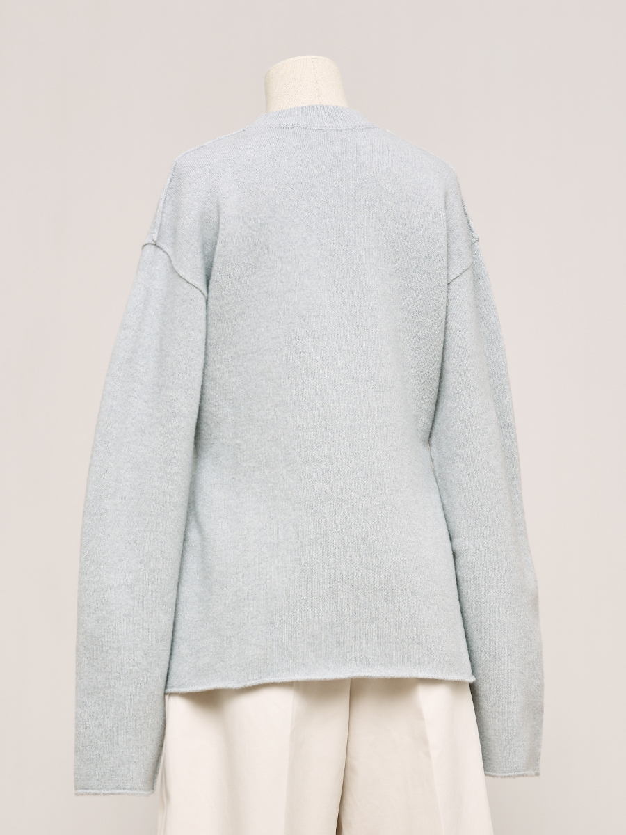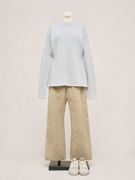灰卡其圓領寬版羊毛衫