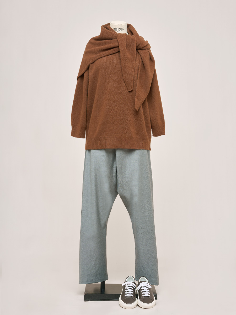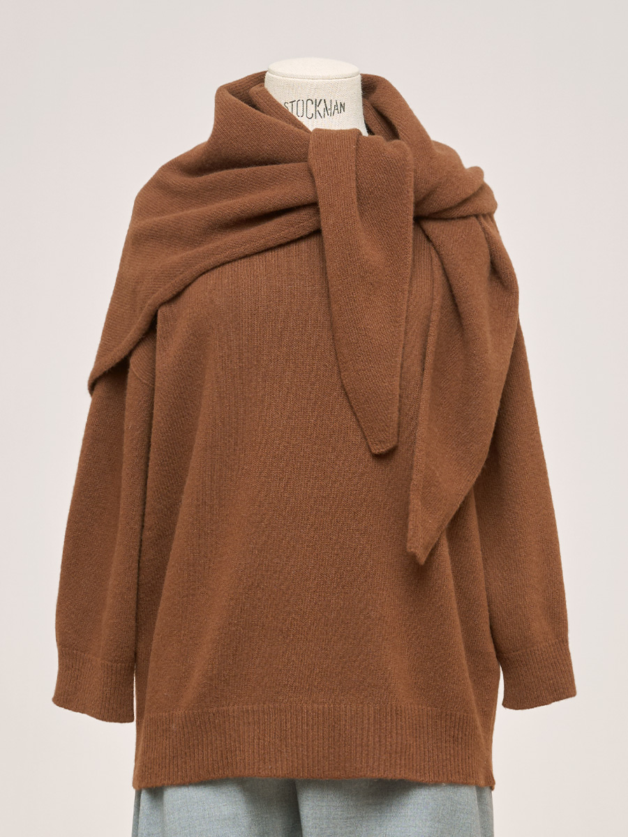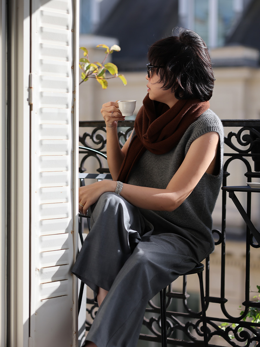 灰褐雜織羊駝毛細長領巾