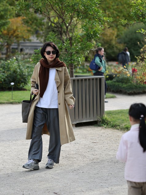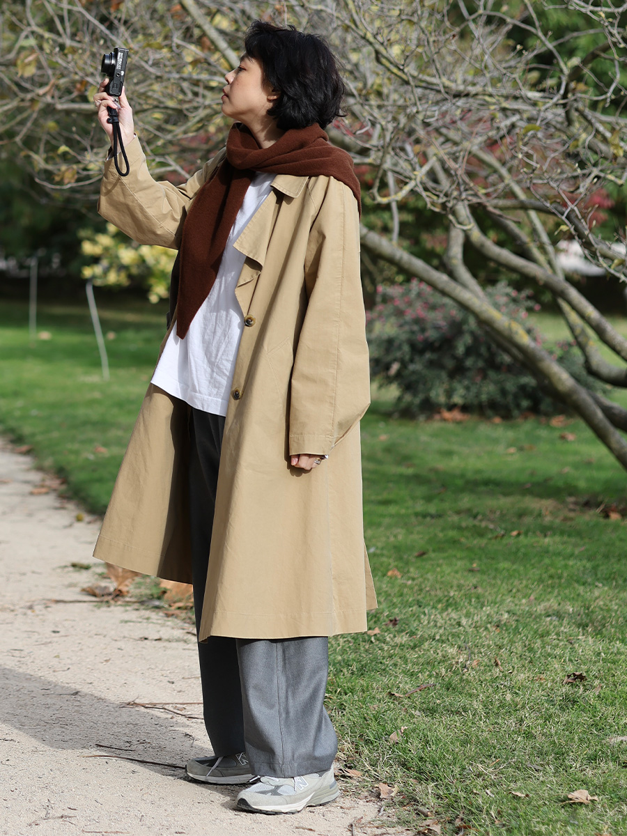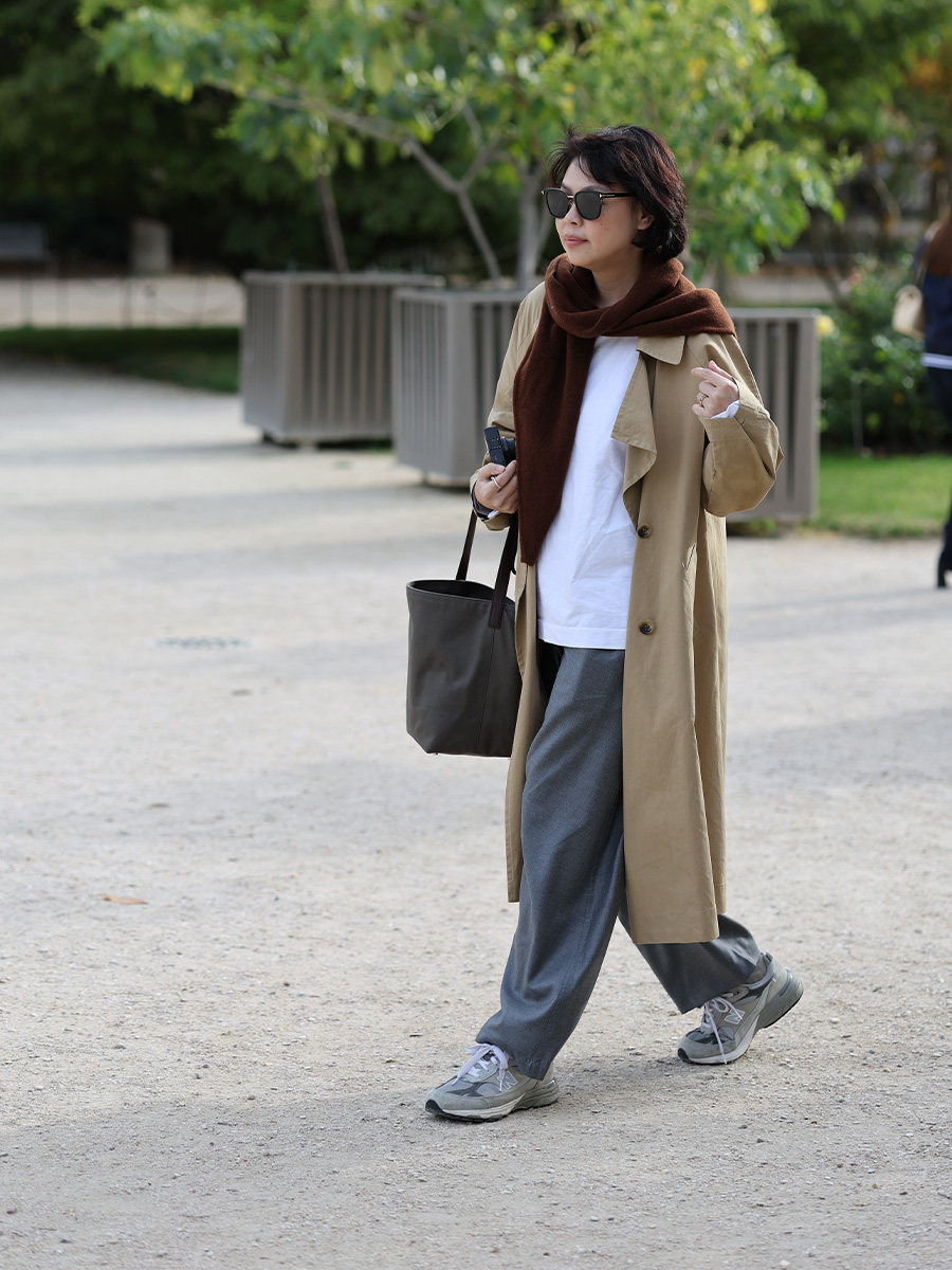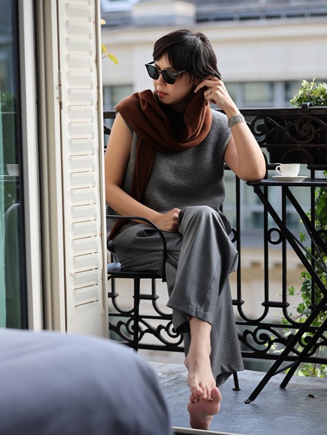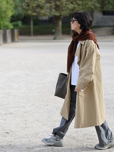 灰褐雜織羊駝毛細長領巾