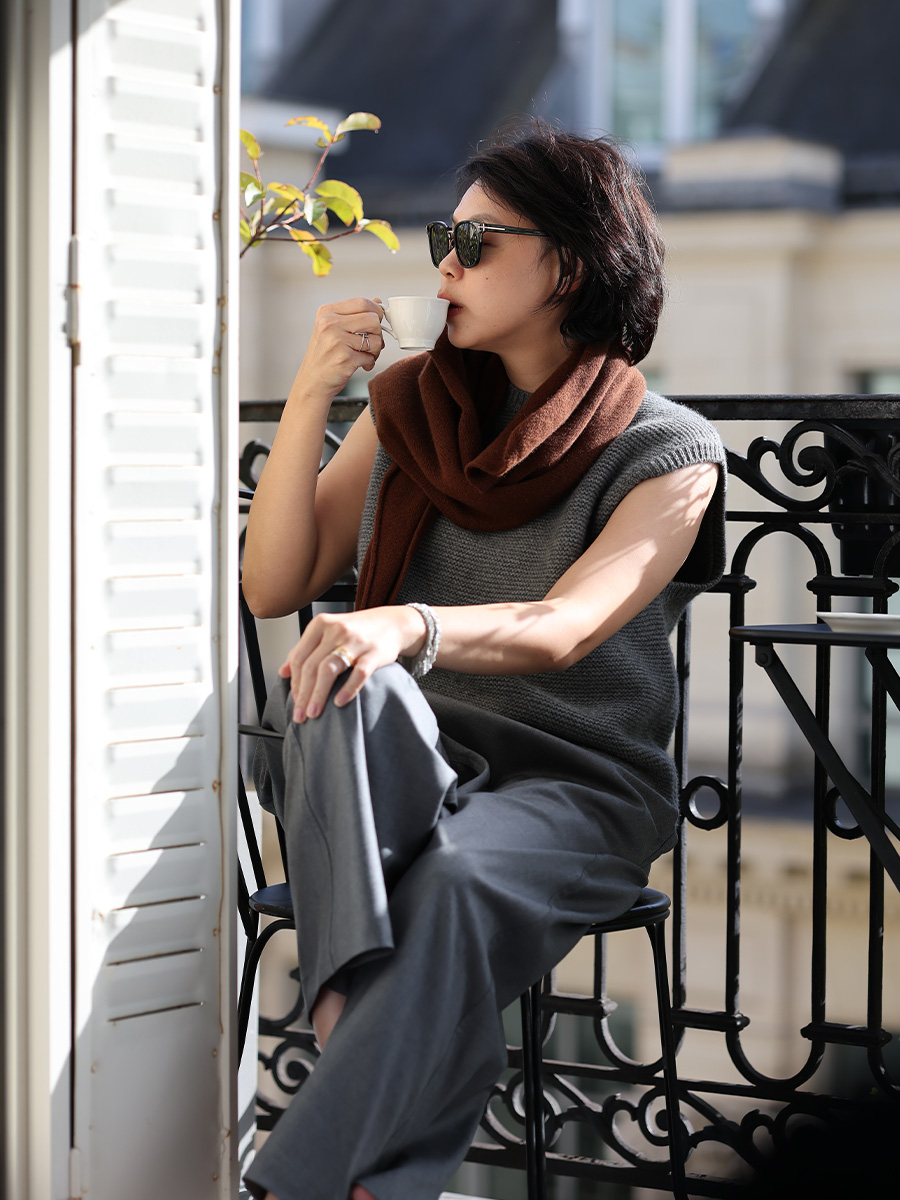 墨染漸層薄織羊毛圍巾