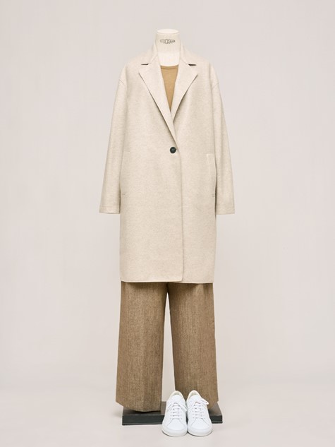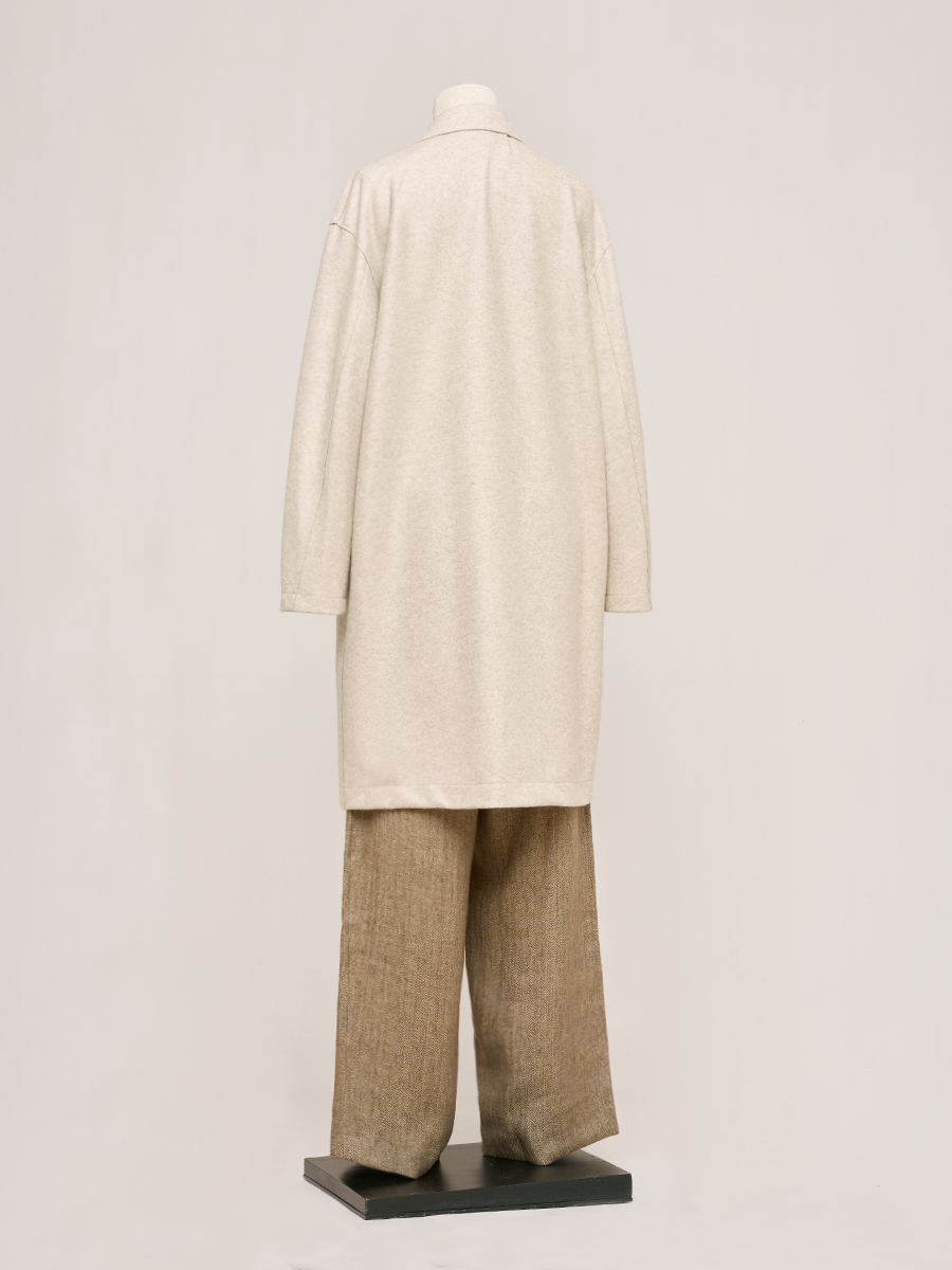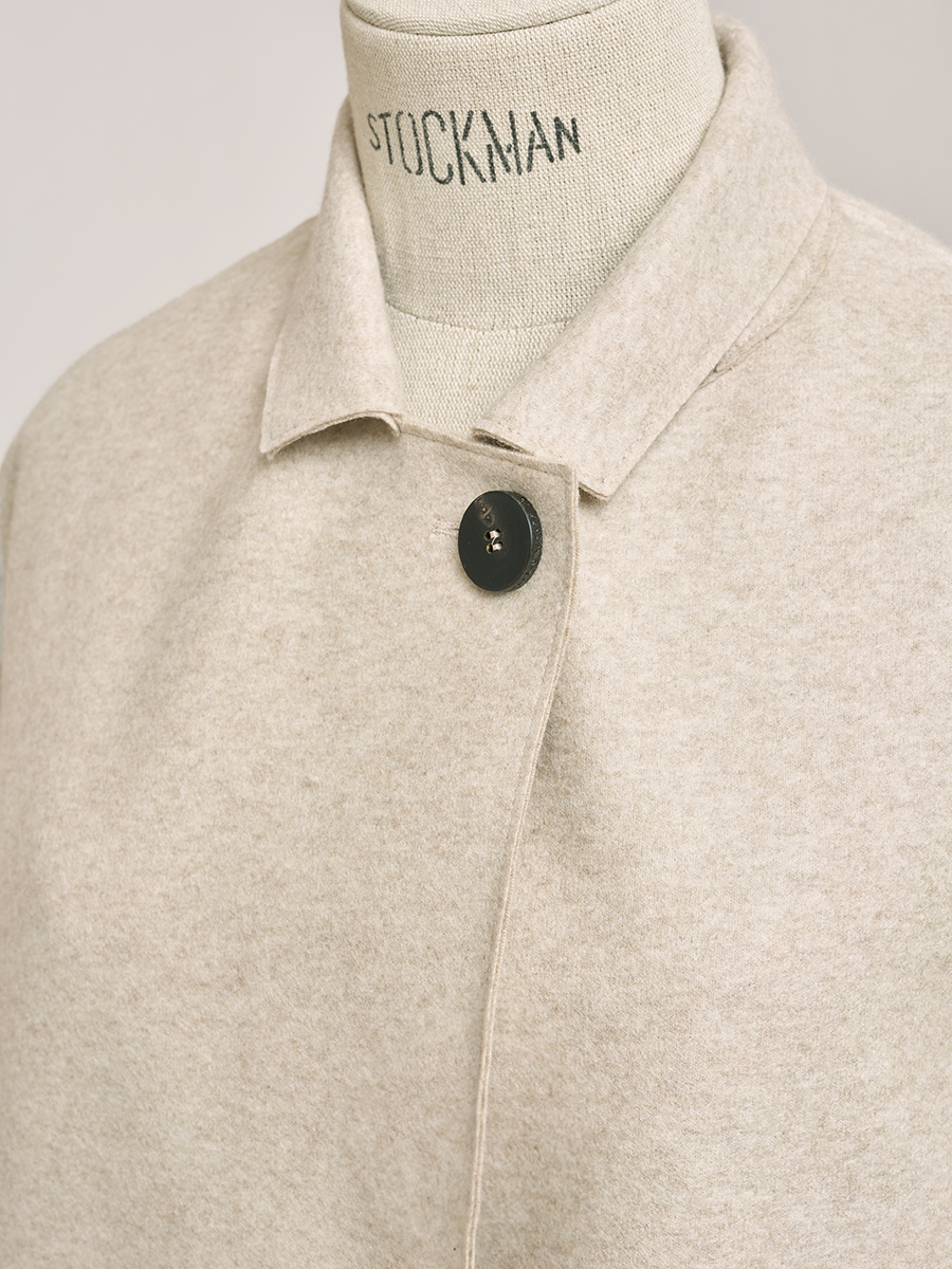 Harris Wharf London最擅長運用品牌著名的羊毛氈材質,在看似簡約的版型中,以細膩巧思雕琢,展現優雅風情,而這款外套正巧做出最佳詮釋。外型俐落雅緻而經典百搭,慎重選用Loro Piana百分之百上乘喀什米爾面料,定能成為陪伴多年的默契搭襠。領片剪裁擷取西裝外套元素,再運用弧形衣身和前襟處單顆鈕釦微微勾勒身型,即使套穿於厚款上衣之外,看來依舊挺括修長。
