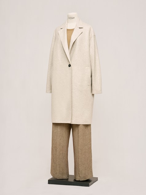 米白混色雙排釦大衣