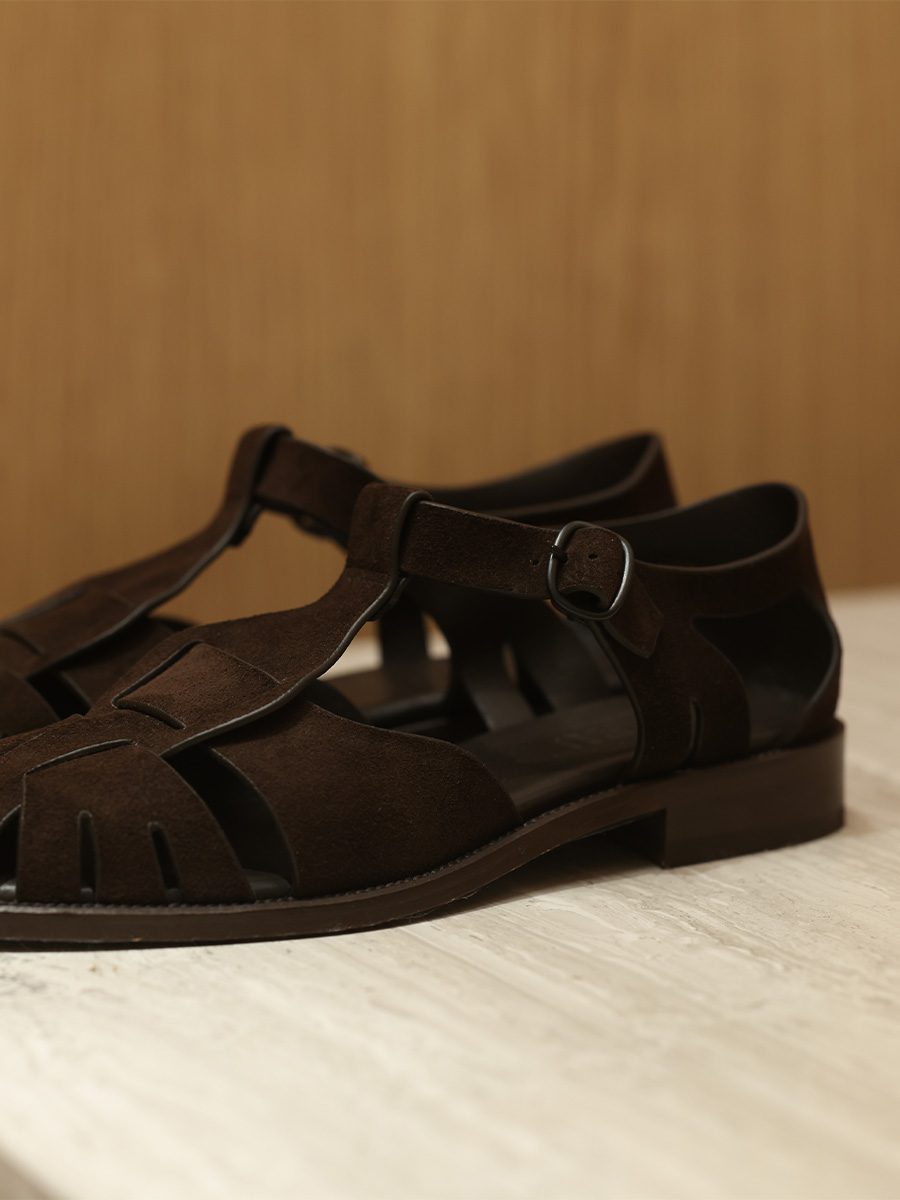 HEREU這款設計為文藝復古的低跟瑪莉珍鞋注入摩登時髦的新鮮元素,在西班牙打造此一迷人版本。它以深可可色麂皮裁製而成,編織鞋面極具幾何對稱美感;小牛皮鞋墊與鞋底帶來柔軟舒適的穿著感受,同時亦能維持簡約廓形。建議搭配露踝下半身單品,展現品牌一貫的細膩工藝。