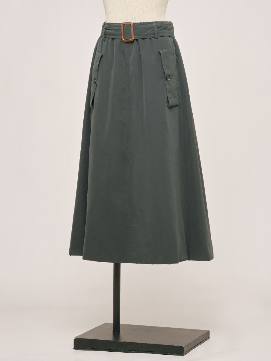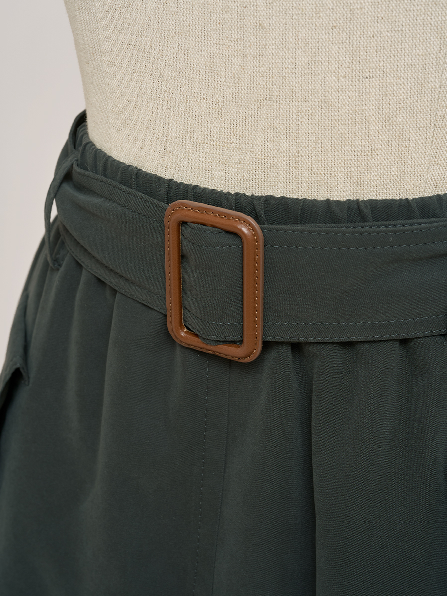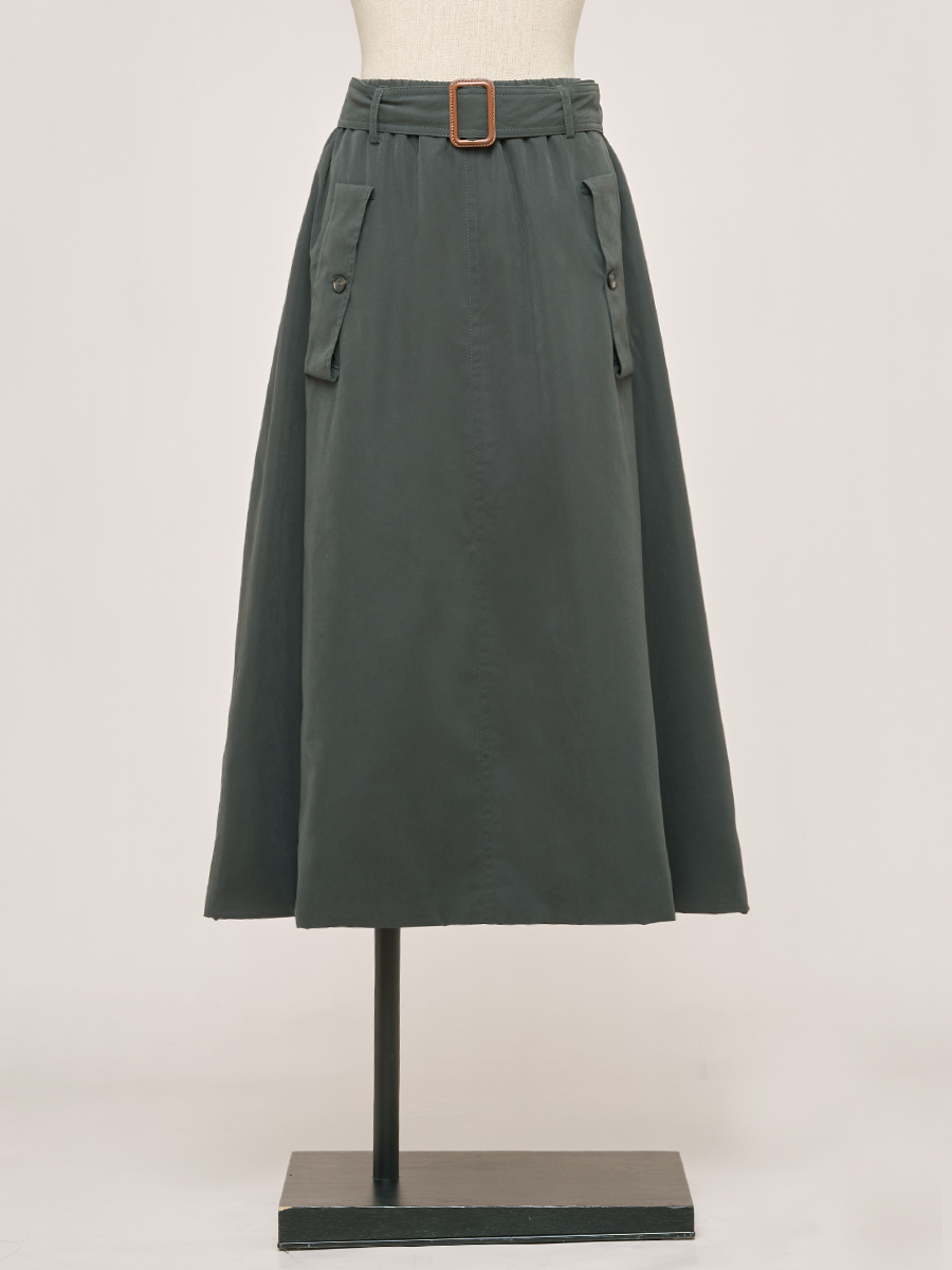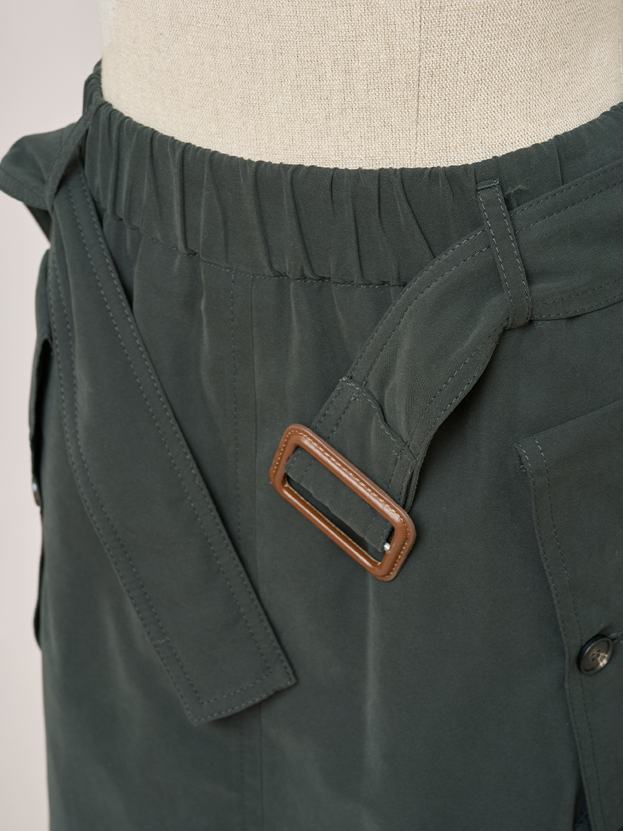 甘草黑繫帶口袋圓裙