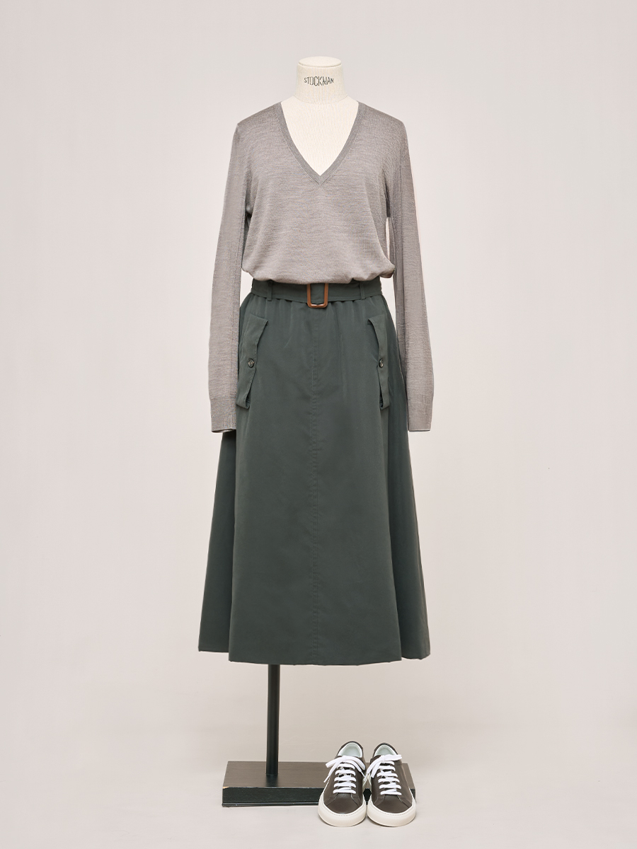 森綠色細絨裁接圓裙