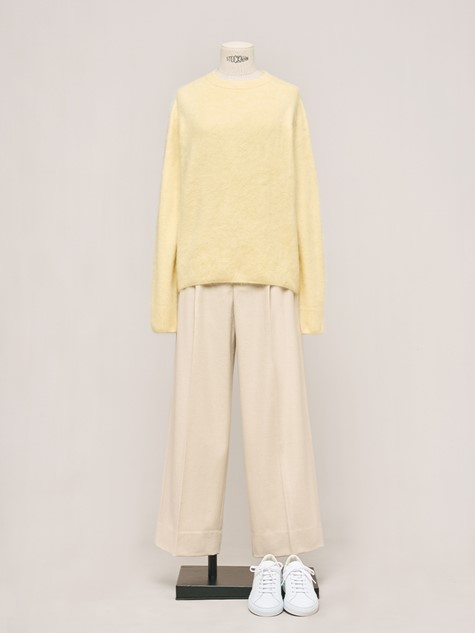 灰卡其圓領寬版羊毛衫