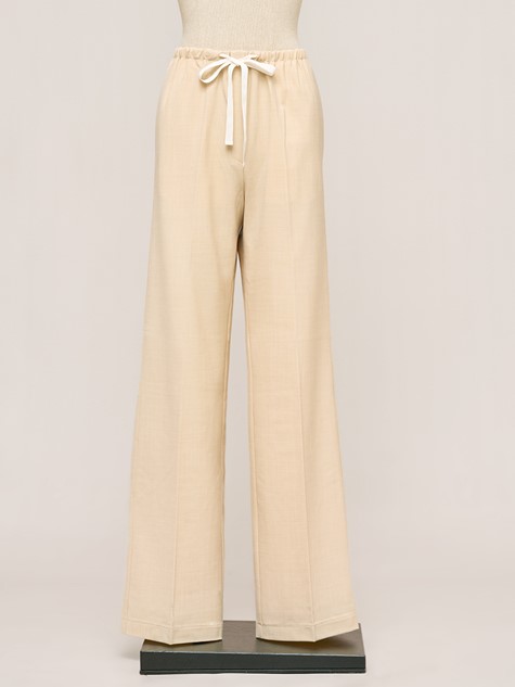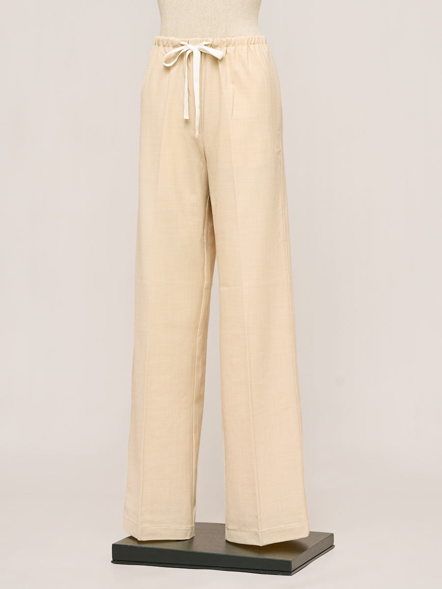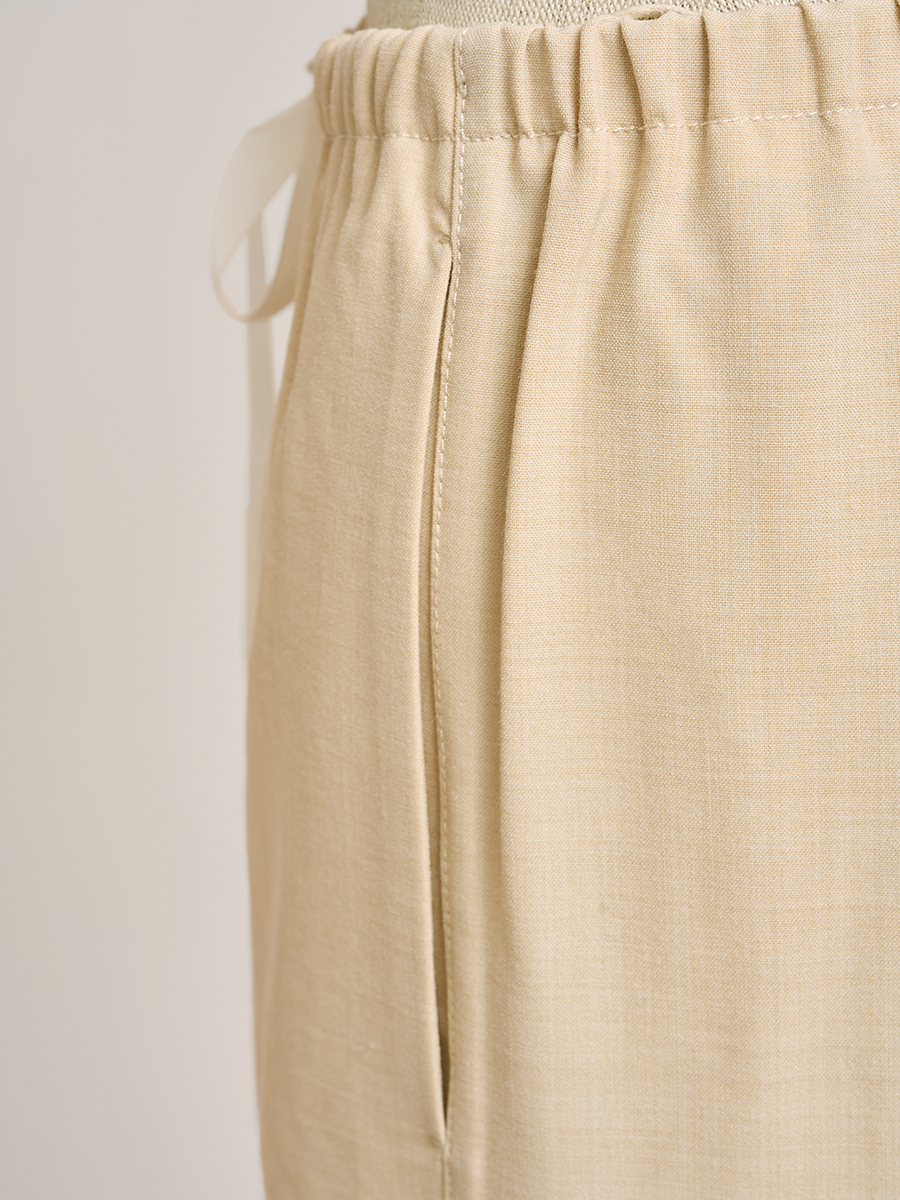 卡其色純棉褶襉長褲