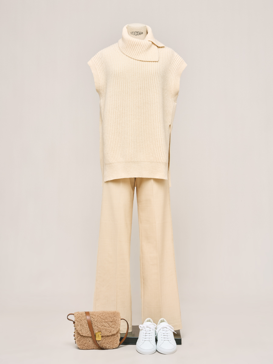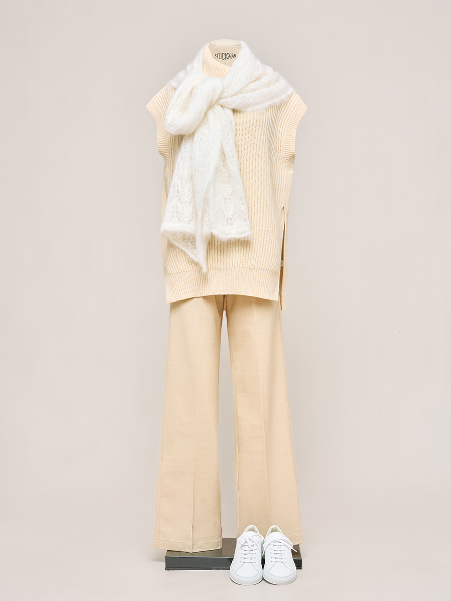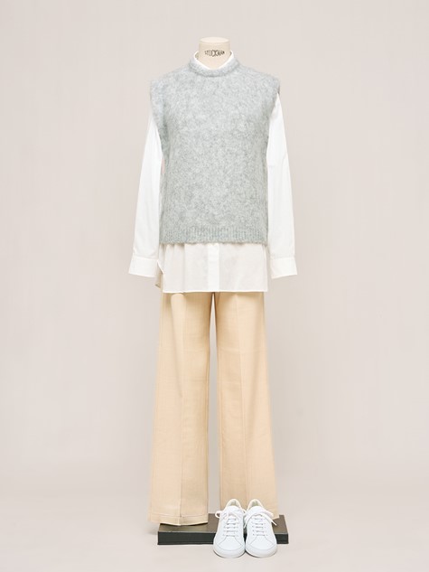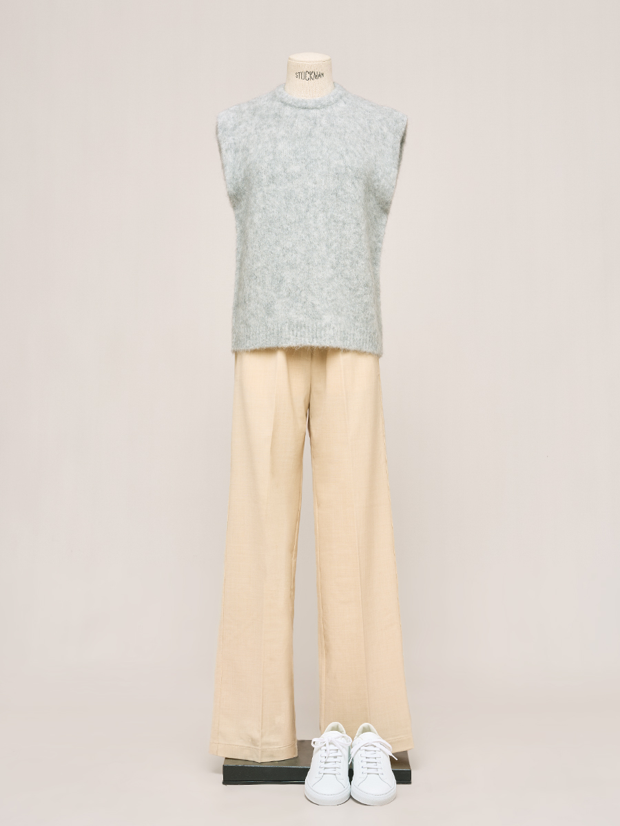 石灰色縫線羊毛針織長褲
