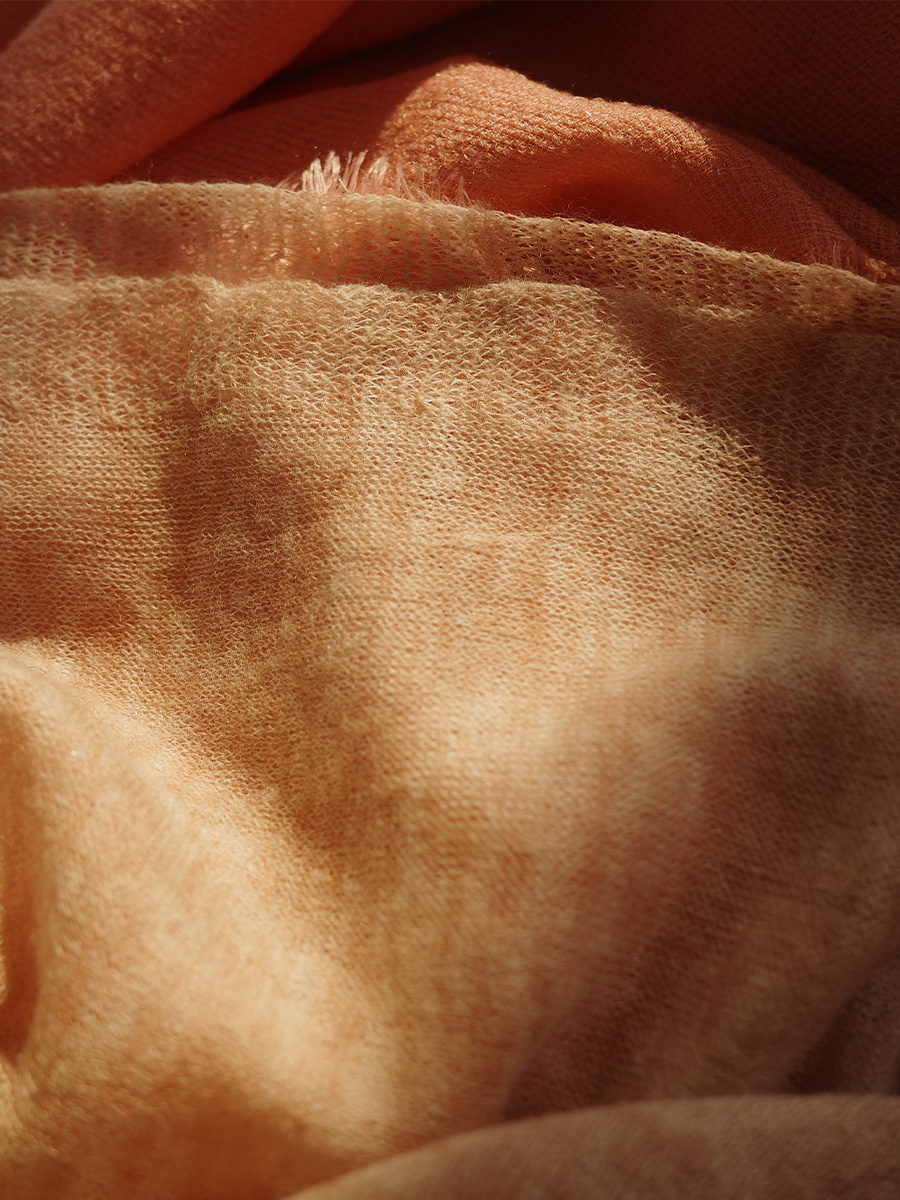 鏽紅色薄織羊毛長形圍巾