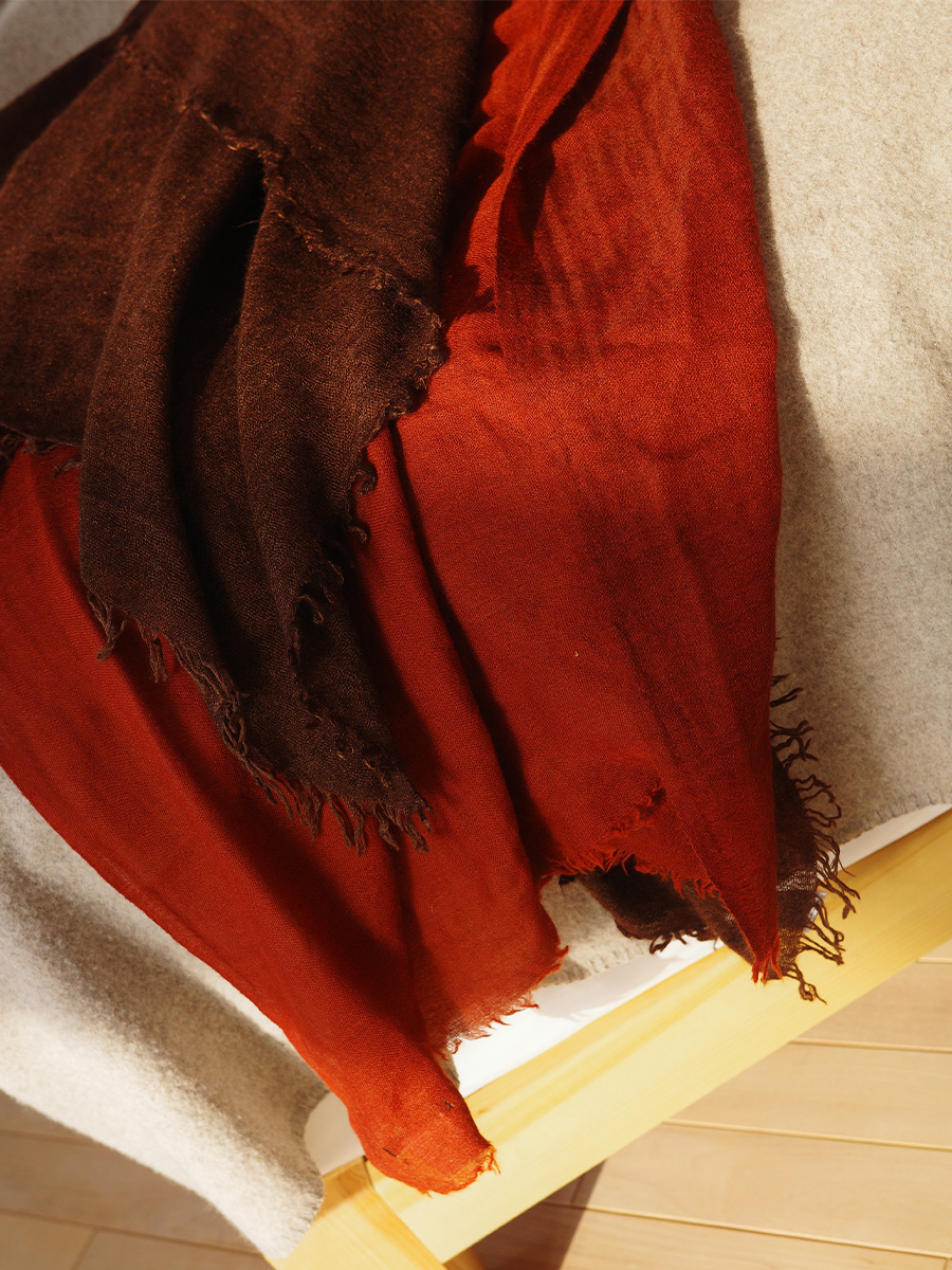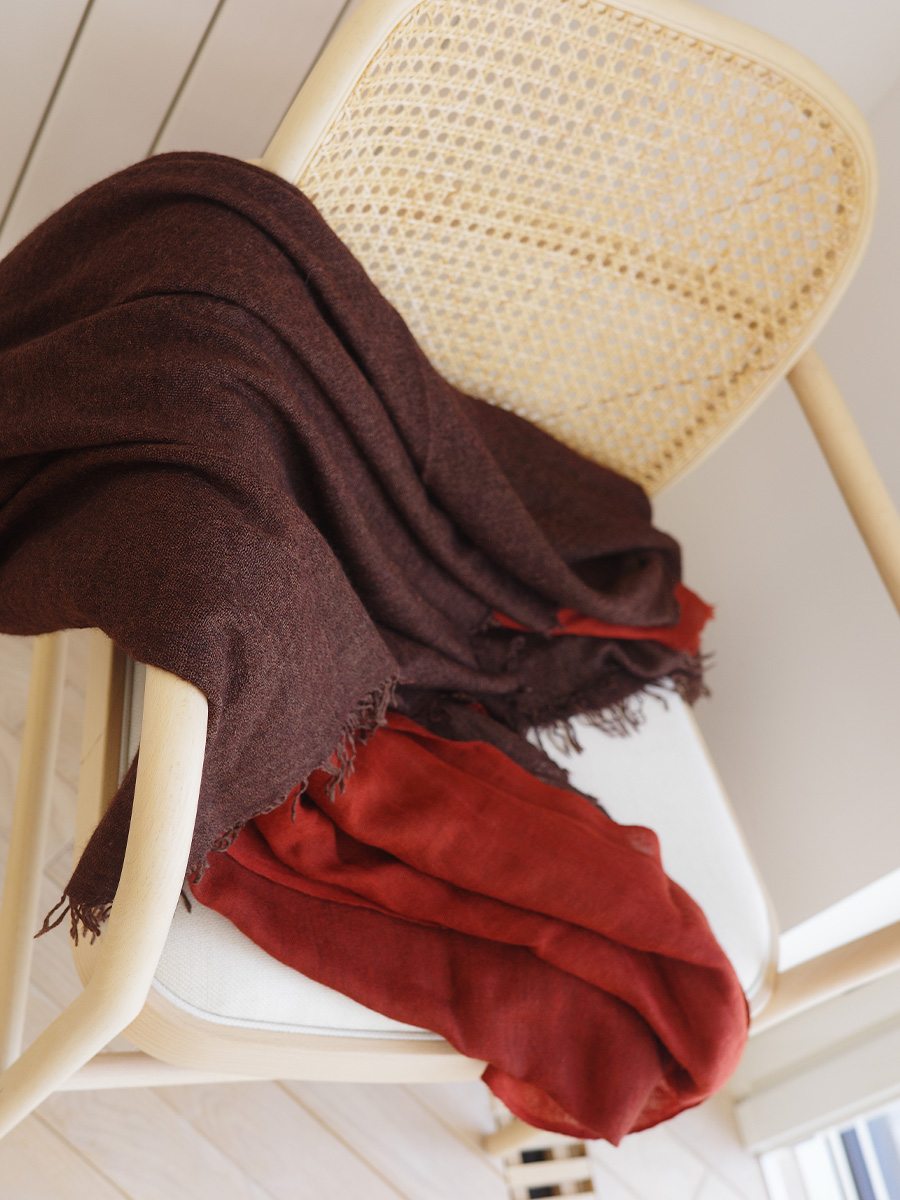 鏽紅色薄織羊毛長形圍巾