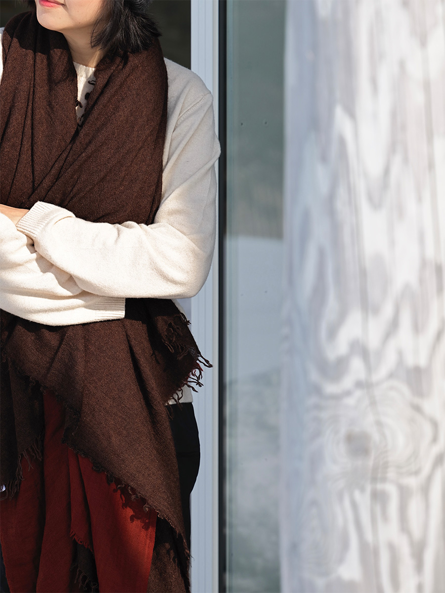 可可色羊毛混絲方形圍巾
