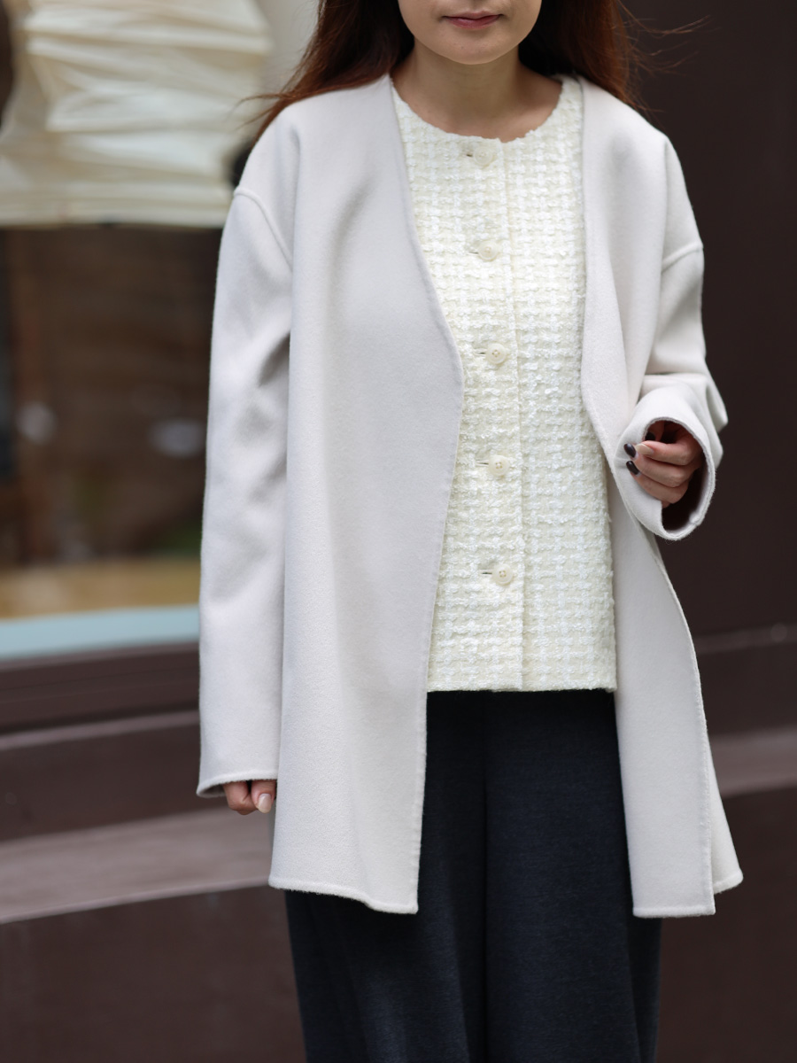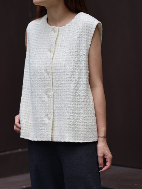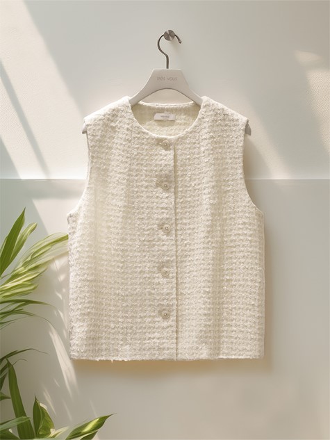 雪白色羊駝毛V領背心
