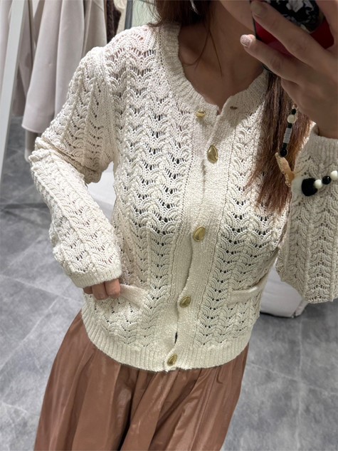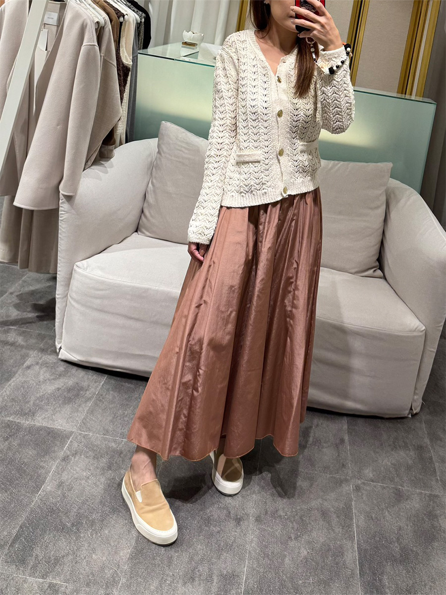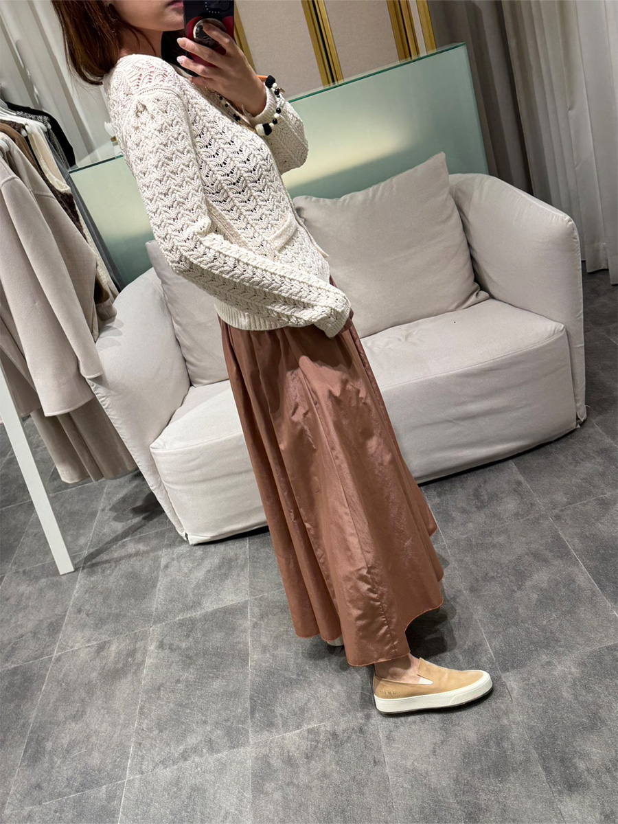 奶油白縫線羊毛A字裙