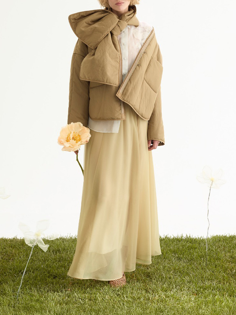 乾草色垂墜飄逸長裙