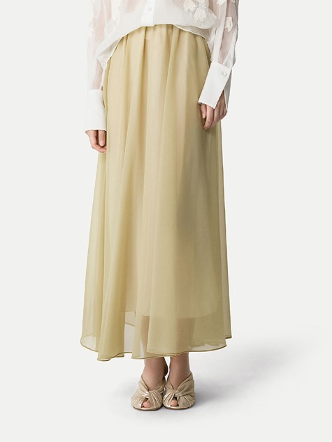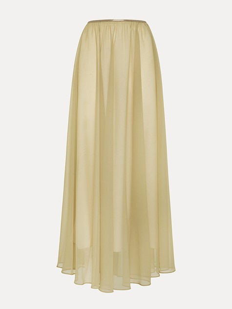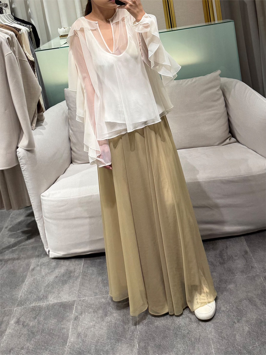 淺沙色揉皺布紋絲質長裙