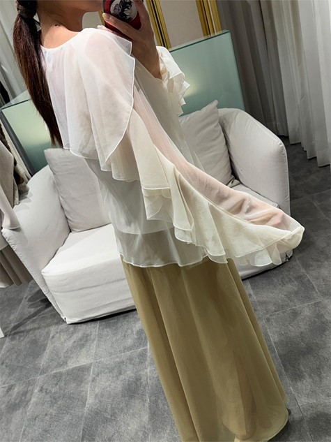 米白色純棉拼接氣球長裙