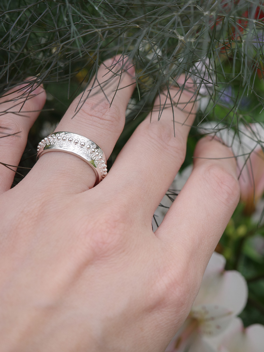 環形泡沫純銀寬版戒