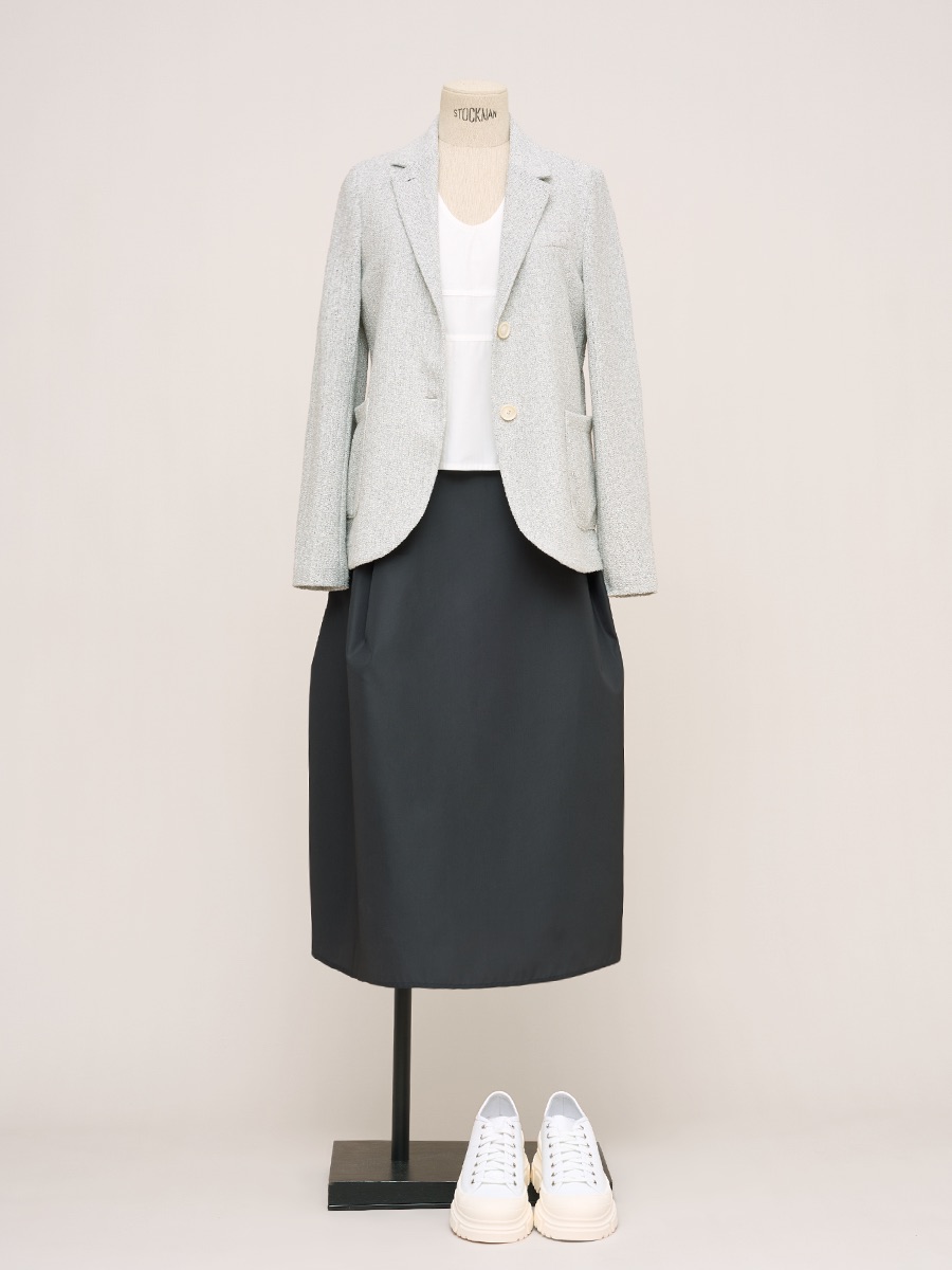 湖水綠羊駝毛混紡A字裙
