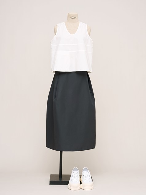 水洗黑純棉抽繩圓裙